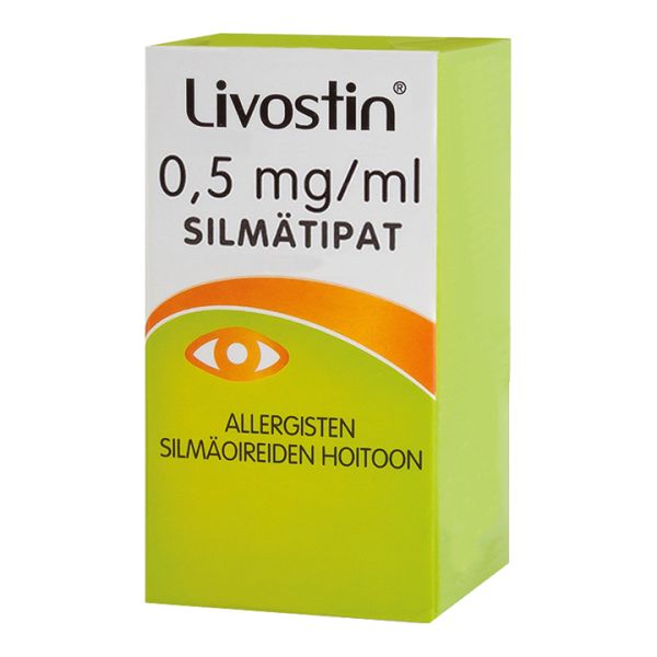 Livostin-silmätipat lievittävät nopeasti ja pitkävaikutteisesti histamiinin aiheuttamia silmävaivoja, kuten kutinaa, punoitusta, silmäluomien turvotusta ja silmien vetistämistä. Sitä käytetään mm. heinien, siitepölyn, homeen, pölyn tai muiden aineiden aiheuttamiin allergisiin silmäoireisiin, Alle 4-vuotiaille ja pitkäaikaiseen käyttöön vain lääkärin ohjeen mukaan.