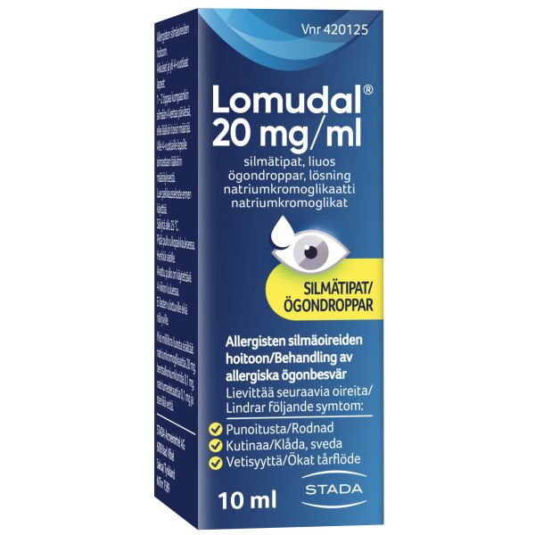 Lomudal-silmätipat vaikuttavat silmän sidekalvon allergisen tulehduksen eli konjunktiviitin aiheuttamiin silmäoireisiin kuten silmien kutinaan, punoitukseen ja vetisyyteen. Lomudal-silmätipat sisältävät natriumkromoglikaattia, joka estää histamiinin ja muiden tulehdusta aiheuttavien aineiden vapautumisen. Lomudalia voidaan käyttää ennaltaehkäisevästi, mutta myös oireiden jo ilmaannuttua. Lomudal-silmätipat on tarkoitettu aikuisille ja yli 4-vuotiaille lapsille. Lomudal-silmätippoja on saatavilla säilöntäaineettomissa kertakäyttöpipeteissä ja pullossa.
