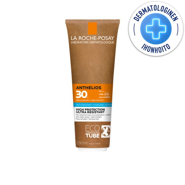 ANTHELIOS AURINKOSUOJAVOIDE SPF30. Korkea UVA- ja UVB-suoja. Erittäin vedenkestävä sekä hikoilun- ja hiekankestävä. Hajusteeton