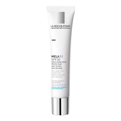 MELAB3 SPF30: Korjaava ja suojaava päivävoide herkälle iholle pigmenttimuutoksia vastaan, sisältää aurinkosuojakertoimen 30. Sisältää 5 % niasiiniamidia ja MELASYL-ainesosaa. Pigmenttimuutokset/tummat läiskät ovat näkyvästi vähentyneet 4 viikon jälkeen.