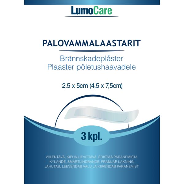 Lumocare palovammalaastari 4,5 x 7,5cm (2,5 x 5cm) 3 kpl