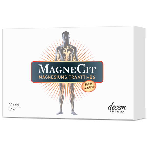 MagneCit on ravintolisä, joka sisältää hyvin imeytyvää kidevedetöntä magnesiumsitraattia sekä B6-vitamiinia.
