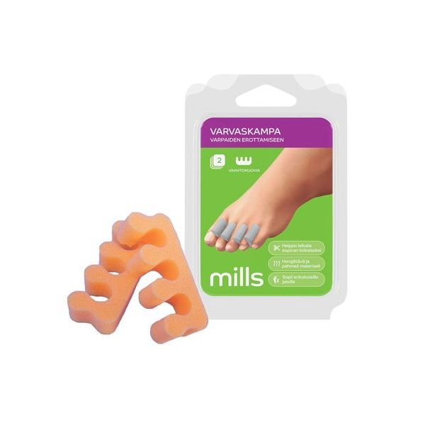 Varvaskampa suojaa varpaiden välistä ihoa ja tukee kevyesti varpaiden asentoa.