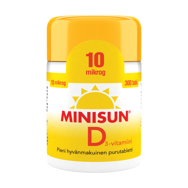 Suomessa kehitetyt Minisun D-vitamiinitabletit sopivat koko perheelle. Minisun 10 mikrog purutabletti sopii käytettäväksi ympäri vuoden.