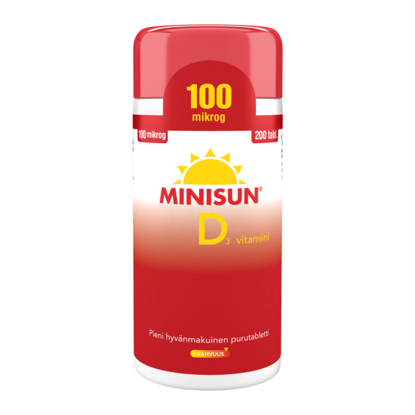 Pieni, hyvänmakuinen purutabletti. D3-vitamiinivalmiste. Sisältävät hyvin imeytyvää D3-vitamiinia ja tablettien annostelu on helppoa. Yksi purutabletti päivässä riittää.