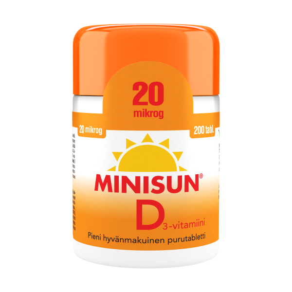 Minisun-tabletit sisältävät hyvin imeytyvää D3-vitamiinia. Hyvänmakuiset Minisun-tabletit voit imeskellä, pureskella, niellä tai murskata.