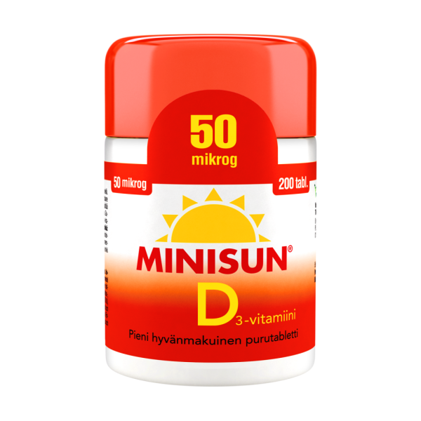 Minisun-tabletit sisältävät hyvin imeytyvää D3-vitamiinia. Hyvänmakuiset Minisun-tabletit voit imeskellä, pureskella, niellä tai murskata.