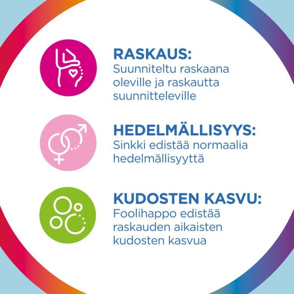 Multi-tabs Pregnant Multivitamin Monivitamiini 120 tablettia on suunniteltu raskaana oleville ja raskautta suunnitteleville. Ravintolisä edistää normaalia hedelmällisyyttä sekä kudosten normaalia kasvua. Se sisältää myös päivittäin tarvittavia vitamiineja ja kivennäisaineita jaksamisen ja vastustuskyvyn tueksi.