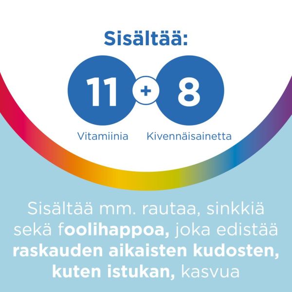 Multi-tabs Pregnant Multivitamin Monivitamiini sisältää esimerkiksi:
