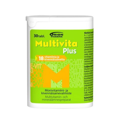Apteekkiasiakkaiden suosikkituote*! Laadukas ja monipuolinen monivitamiini-ja kivennäisainevalmiste erityisesti aikuisille. Yhdessä helposti nieltävässä tabletissa on 18 päivittäin tarvittavaa vitamiinia ja kivennäisainetta. Monipuolinen koostumus perustuu aina uusimpiin suomalaisiin ravitsemussuosituksiin. Laktoositon (maidoton), gluteeniton, hiivaton ja sokeriton. Ei sisällä eläinperäistä liivatetta. Ravintolisä.