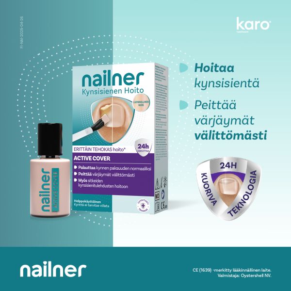 Nailner Active Cover muuttaa kynnen mikroympäristöä muuttamalla kynnenalustan happamaksi. Nailner Active Cover sisältää happamia ainesosia, jotka pystyvät läpäisemään kynnen ja hoitavat siten kynttä sekä ulko- että sisäpuolelta. Yleensä vie kuukausia ennen kuin sairastunut kynsi näyttää jälleen täysin normaalilta. Varpaankynnet kasvavat keskimäärin 1,5 mm kuukaudessa. Nailner Active Cover alentaa välittömästi kynnen pH-arvoa ja muodostaa siten kynsisienen kasvun kannalta epäsuotuisan ympäristön. Vahingoittuneen kynnen kasvu vie aikaa. Nailner Active Cover -valmiste on kliinisissä kokeissa osoitettu tehokkaaksi.