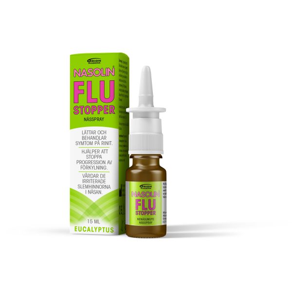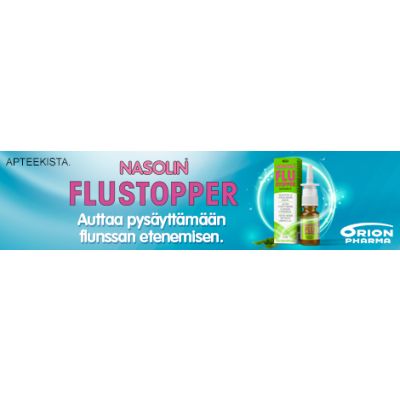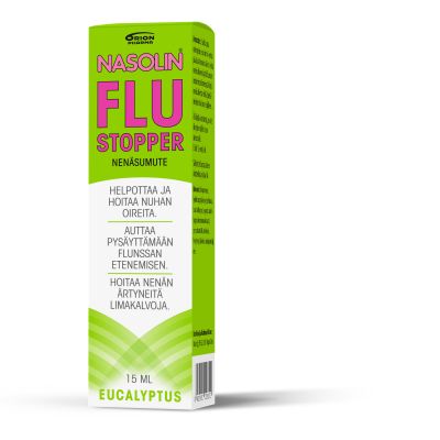 Heti flunssan ensioireisiin käytettynä Nasolin FluStopper nenäsumute pysäyttää flunssan etenemisen ja lyhentää taudin kestoa. Nasolin FluStopper nenäsumute irrottaa limaa, huuhtelee pois taudinaiheuttajia sekä hoitaa ärtyneitä ja turvonneita nenän limakalvoja.Valmisteen flunssaa parantava vaikutus perustuu erityisesti sen alhaiseen, viruksia torjuvaan pH-arvoon sekä huuhteluvaikutukseen. Valmiste ei sisällä lääkeaineita, ja se on CE-merkitty terveydenhuollon valmiste.