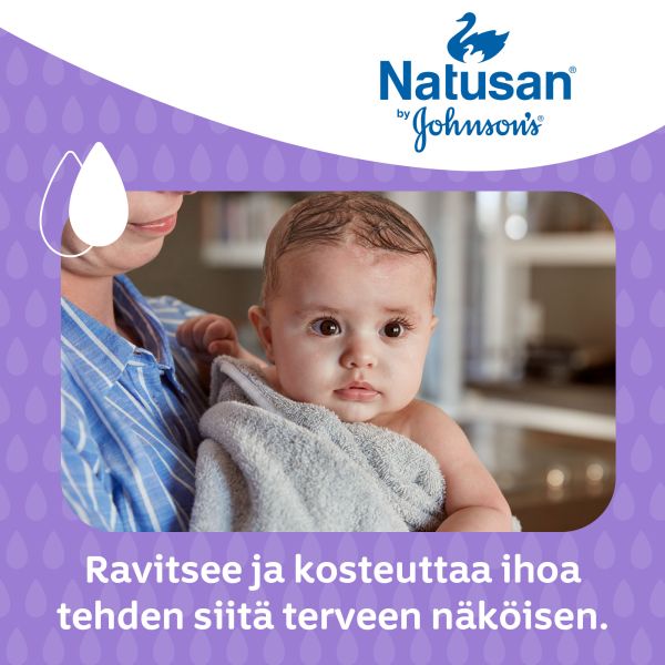 Kosteuttava vauvaöljy rauhoittavalla ja rentouttavalla NaturalCalm™-tuoksulla. Täydellinen iltarutiiniin.
