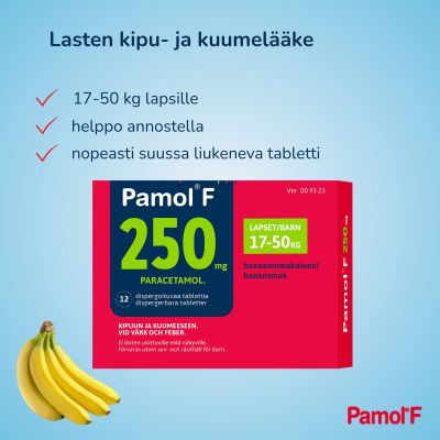 Pamol F on nopeasti suussa liukeneva tabletti, jonka vaikuttavana aineena on parasetamoli. Sitä käytetään lasten kuumeen ja kivun hoitoon, kuten mm. korvasärkyyn tai nuhakuumeen hoitoon ja rokotuksiin liittyvän kuumeiluun tai kipuun. Lääke on banaaninmakuinen.