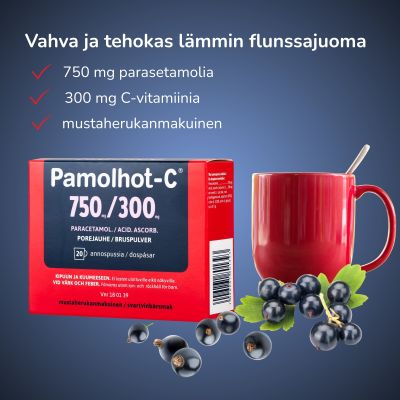 Pamolhot-C-valmistetta käytetään lyhytaikaiseen flunssan, influenssan ja ylähengitystietulehdusten aiheuttamien kuume- ja särkytilojen hoitoon. Mustaherukanmakuinen lääke sisältää kahta vaikuttavaa ainetta, parasetamolia ja askorbiinihappoa (C-vitamiinia). Parasetamoli on kipua lievittävä ja kuumetta alentava lääke. Askorbiinihappo kattaa flunssan ja influenssan aikaisen lisääntyneen C-vitamiinin tarpeen. Ei alle 16-vuotiaille.