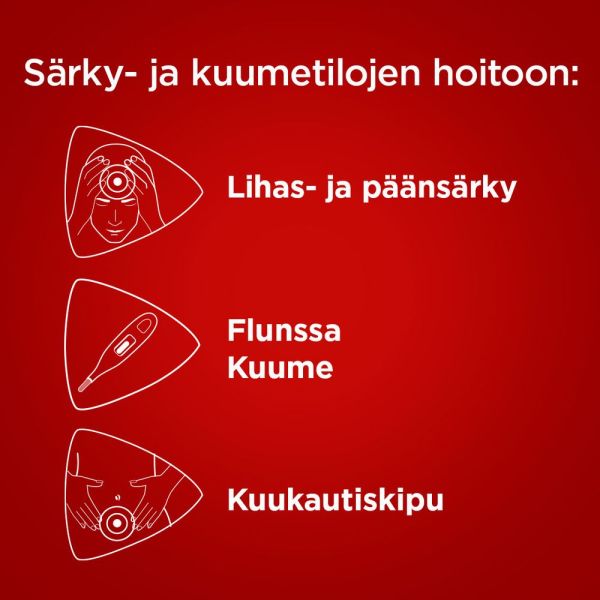 Sisältää parasetamolia. Ei saa käyttää samanaikaisesti muiden parasetamolia sisältävien valmisteiden kanssa, koska samanaikainen käyttö muiden parasetamolia sisältävien valmisteiden kanssa saattaa johtaa yliannostukseen. Parasetamolin yliannostus saattaa aiheuttaa maksavaurion, mikä voi johtaa maksansiirtoon tai kuolemaan