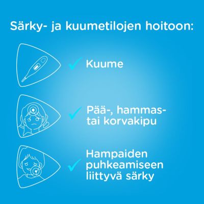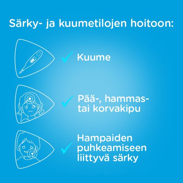 Jos lapsellasi on muita sairauksia tai yliherkkyyksiä tai jos hän käyttää muita lääkkeitä, varmista lääkkeen sopivuus pakkausselosteesta, apteekista tai lääkäriltäsi