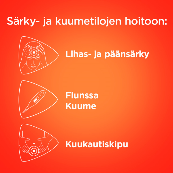 Sisältää parasetamolia. Ei saa käyttää muiden parasetamolia sisältävien valmisteiden kanssa. Samanaikainen käyttö muiden parasetamolia sisältävien valmisteiden kanssa saattaa johtaa yliannostukseen.