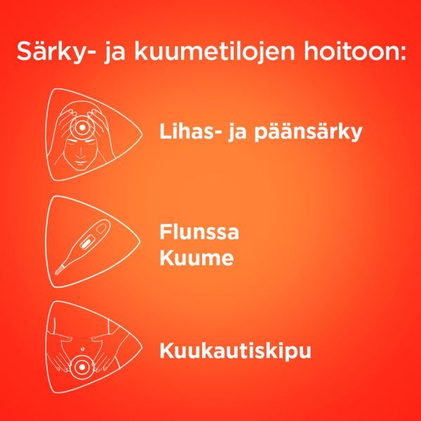 Sisältää parasetamolia. Ei saa käyttää muiden parasetamolia sisältävien valmisteiden kanssa. Samanaikainen käyttö muiden parasetamolia sisältävien valmisteiden kanssa saattaa johtaa yliannostukseen.