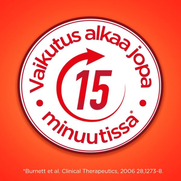 Itsehoitolääke. Lue pakkausseloste ennen käyttöä. Ei lasten ulottu ville eikä näkyville. Ei suositella alle 18-vuotiaille.
