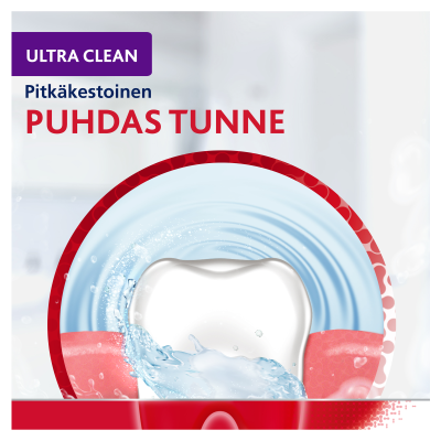 *ammattilaisen suorittaman hampaiden puhdistuksen jälkeen ja kaksi kertaa päivässä yhtäjaksoisesti käytettynä