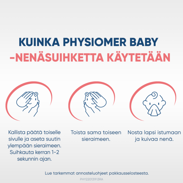 Miten Physiomer Baby -nenäsuihketta käytetään: