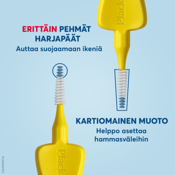 Puhtaat hampaat -raikas olo! Plackers Gentle Brush -hammasväliharjat poistavat plakin ja ruoantähteet helposti ja tehokkaasti.Hammasvälien puhdistus auttaa ehkäisemään ientulehdusta ja hampaiden irtoamista. Siksi hammaslääkärit suosittelevat päivittäistä hammasvälien puhdistusta.