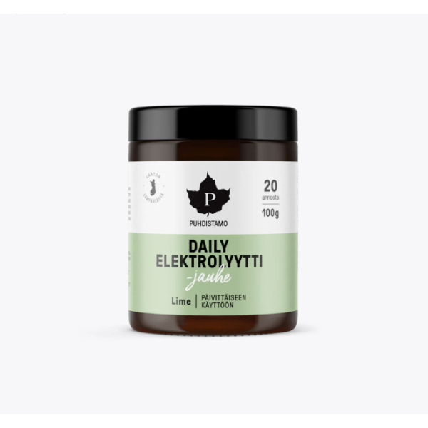 Puhdistamon Daily Elektrolyyttijauhe on raikas limen makuinen janonsammuttaja, joka auttaa ylläpitämään kehon optimaalista nestetasapainoa.