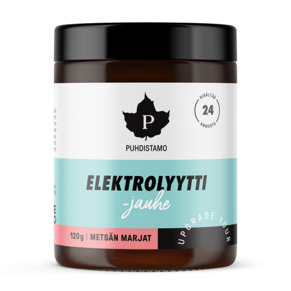 Puhdistamon elektrolyyttijauhe on sokeriton, kokonaisvaltainen ja herkullisen makuinen elektrolyyttijuomajauhe, joka auttaa pitämään yllä tarpeellisten elektrolyyttien tasapainoa elimistössämme. Se sisältää natriumin lähteenä toimivan Guérande-merisuolan sekä muiden keskeisimpien elektrolyyttien lisäksi muun muassa C-vitamiinia sekä orgaanista rikkiä (OptiMSM™). Tuote soveltuu käytettäväksi nesteytykseen aina kun hikoilemme esimerkiksi urheillessa, saunoessa tai kuumana kesäpäivänä. Yksi annos sisältää vain 0,1 g hiilihydraatteja. Vegaaninen tuote.