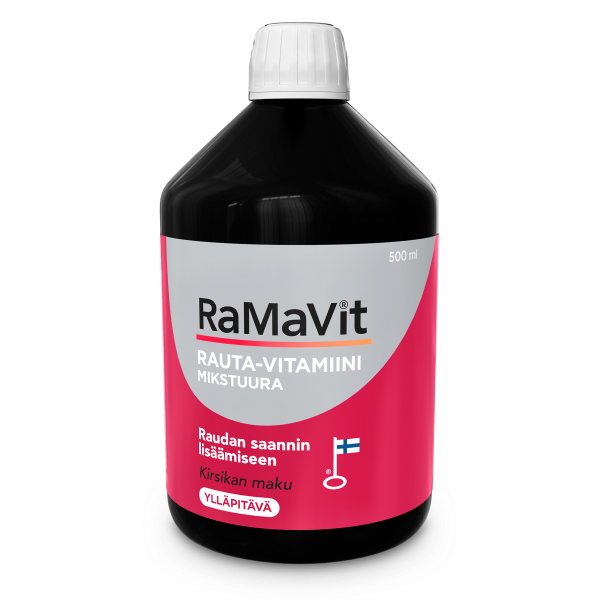 Suomalainen klassikko Ramavit mikstuura on hyvänmakuinen nestemäinen rauta-vitamiinivalmiste. Ramavit mikstuura sisältää orgaanista rautaa sekä tärkeimmät B-ryhmän vitamiinit. Mukana oleva C-vitamiini edistää raudan imeytymistä. Hyvin imeytyvä valmiste. Sopii raskauden ja imetyksen aikana. Sopii myös vegaaneille. Rauta ja C-vitamiini auttavat vähentämään väsymystä ja uupumusta sekä edistävät immuunijärjestelmän normaalia toimintaa. Lisäksi rauta edistää normaalia punaisten verisolujen ja hemoglobiinin muodostumista sekä normaalia hapen kuljetusta kehossa.