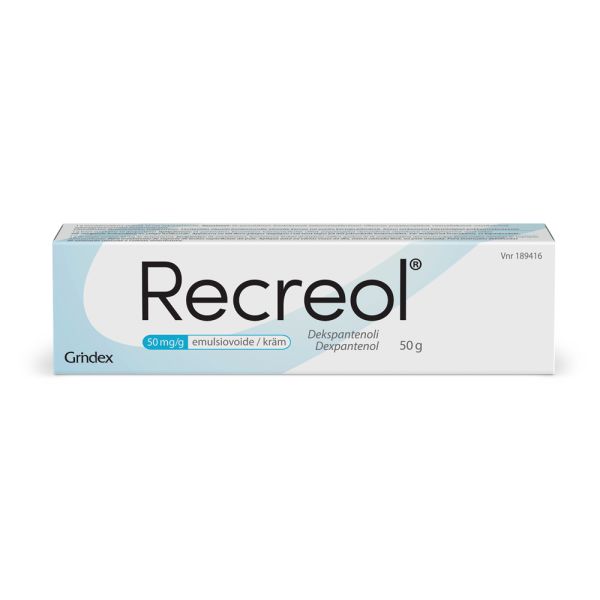 Recreol-emulsiovoiteen vaikuttava aine on dekspantenoli, joka kuuluu haavojen ja haavaumien hoitoon käytettävien lääkeaineiden ryhmään. Dekspantenoli muuntuu kudoksissa pantoteenihapoksi, joka palauttaa ihon kimmoisuuden ja edistää haavojen parantumista. Recreol-voidetta voidaan käyttää lapsille, nuorille ja aikuisille.