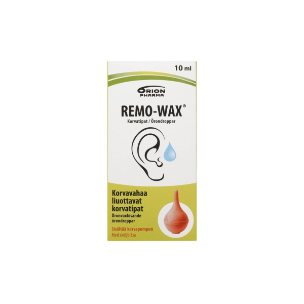 Lämmitä Remo-Wax pulloa kädessäsi jonkin aikaa. Asetu makuulle pää sivulle käännettynä. Tiputa korvaan n.20 tippaa Remo-Waxia. Vedä korvanipukasta kevyesti ylös ja alas pyörittävällä liikkeellä muutaman kerran. Pane vanutuppo korvaan. Anna tippojen vaikuttaa 20 - 60 minuuttia tai tarvittaessa yön yli.