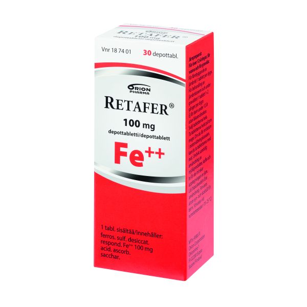 Retafer-depottabletteja käytetään raudanpuuteanemian ehkäisyyn ja hoitoon. Tabletti sisältää myös raudan imeytymistä tehostavaa C-vitamiinia. Kaikki Retafer tuotteet sopivat myös vegaaneille. Suomessa valmistettu.