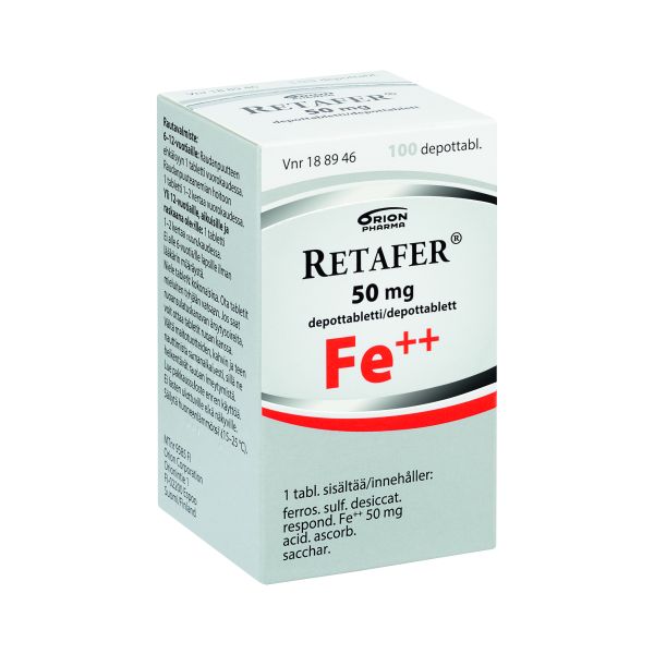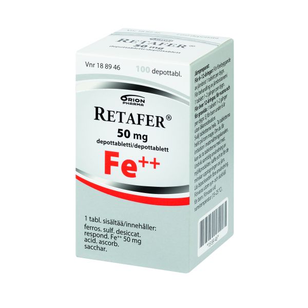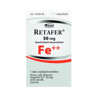Retafer-depottabletteja käytetään raudanpuuteanemian ehkäisyyn ja hoitoon. Tabletti sisältää myös raudan imeytymistä tehostavaa C-vitamiinia. Kaikki Retafer tuotteet sopivat myös vegaaneille. Suomessa valmistettu.