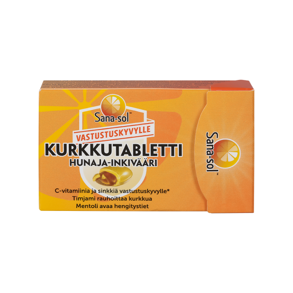 Sokeriton hunaja-inkivääri kurkkutabletti rauhoittaa kurkkua ja avaa hengitystiet. Kurkkutabletti sisältää C-vitamiinia ja sinkkiä vastustuskyvylle. Sisältää myös mentolia sekä yrttejä, mm. sitruunamelissaa ja timjamia. Mentoli avaa hengitystiet. Timjamilla on rauhoittava vaikutus kurkkuun ja nieluun.