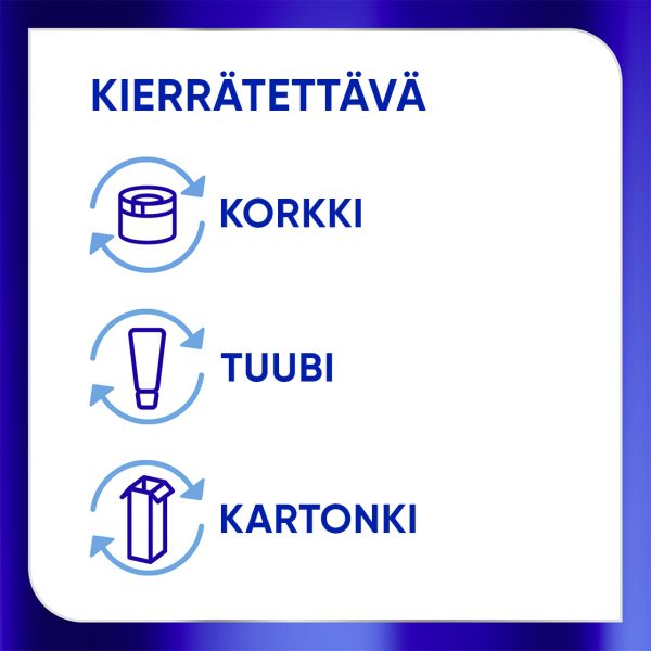 KÄYTÄ AINA OHJEEN MUKAAN. Harjaa hampaat kaksi, korkeintaan kolme kertaa päivässä. Vältä nielemistä ja sylje pois. Sulje korkki käytön jälkeen suojataksesi sisältöä kosteudelta. Vihlovat hampaat voivat olla merkki taustalla olevasta ongelmasta, joka vaatii välitöntä hoitoa. Jos oireet jatkuvat tai pahenevat, ota yhteys hammaslääkäriin. Alle 12-vuotiaille ainoastaan hammaslääkärin tai lääkärin ohjeen mukaan. Jos ilmenee ärsytystä, lopeta tuotteen käyttö. Kerro mahdollisimman pian hammaslääkärille tai lääkärille, jos suusi tai kasvosi turpoavat. Ei lasten ulottuville. Kotelon päädyt on liimattu. Älä käytä, jos ne ovat auki. Ilmoita kaikista tämän tuotteen käyttöön liittyvistä vaaratilanteista tai sivuvaikutuksista valmistajalle, lääkinnällisten laitteiden valvovalle viranomaiselle ja terveydenhuollon ammattilaiselle.