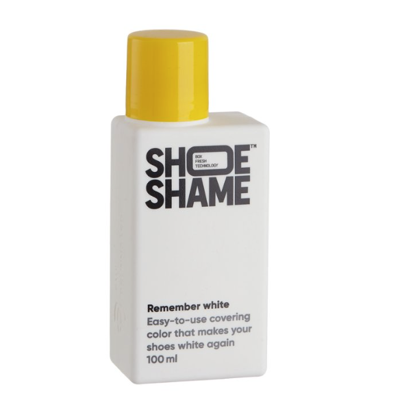 Shoe Shame Remember White -valkaisuväri kirkastaa kengän valkoisia nahka-, tekstiili- ja kumiosia. Suojaa UV-säteilyltä sekä estää väri muutoksia