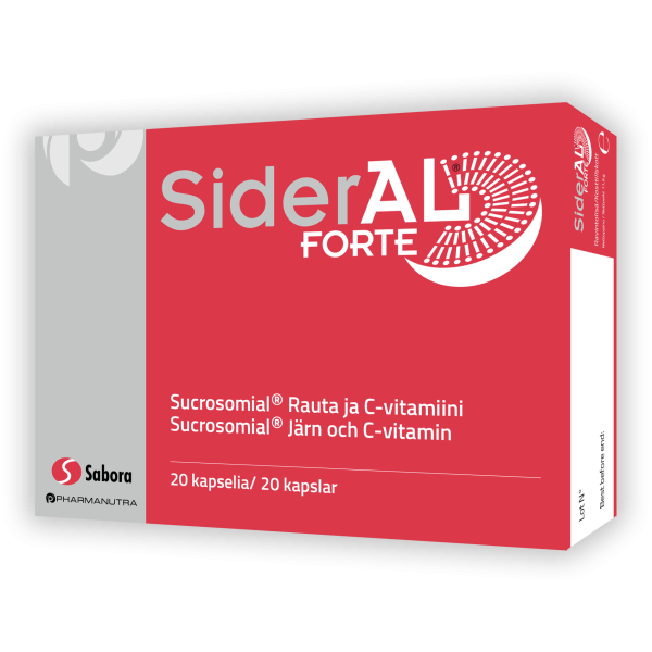 SiderAL® FORTE on uuden sukupolven rautalisä, joka sisältää sukrosomiaalista rautaa (Sucrosomial®Iron) ja C-vitamiinia. Sukrosomiaalisessa raudassa itse rautamolekyyli on suojattu kahdella eri kerroksella. Fosfolipidikaksoiskalvo sekä sukresteri (rasvahappojen sakkaroosiesterit) takaavat raudan korkean imeytyvyyden koko ohutsuolen matkalta sekä erinomaisen maha-suolikanavan sietokyvyn. Suun kautta nautittava ja tehokas sukrosomiaalinen rauta sopii myös niille, jotka eivät siedä tavanomaisia rautavalmisteita.