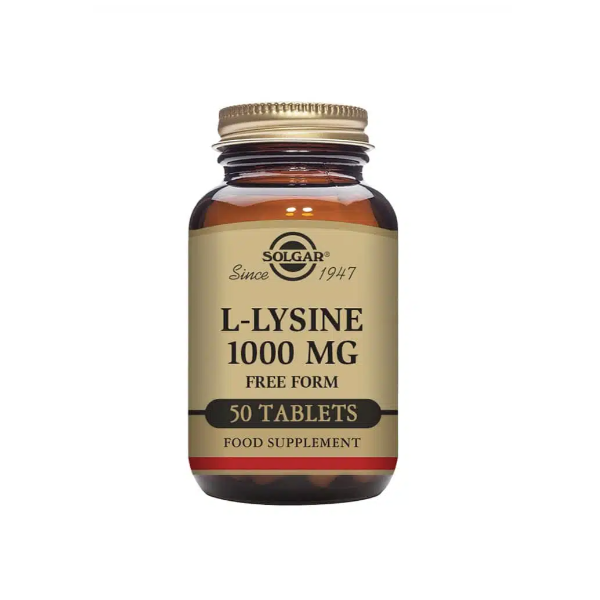 Solgar® L-Lysiini 1000 mg on korkealaatuinen, vahva aminohappovalmiste, joka sisältää keholle välttämätöntä lysiini-aminohappoa.