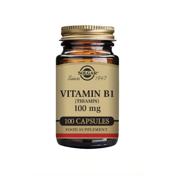 Solgar® B1-vitamiini 100 mg sisältää tiamiinina tunnettua B1-vitamiinia. B1-vitamiini on vesiliukoinen vitamiini, jota tulee saada ravinnosta. Se osallistuu ravinnon hiilihydraattien, proteiinien ja rasvojen muuttamiseen energiaksi. B1-vitamiinia löytyy luontaisesti täysjyvästä, pavuista, pähkinöistä ja lihasta. B1-vitamiini osallistuu kehon jokaisen solun toimintaan.