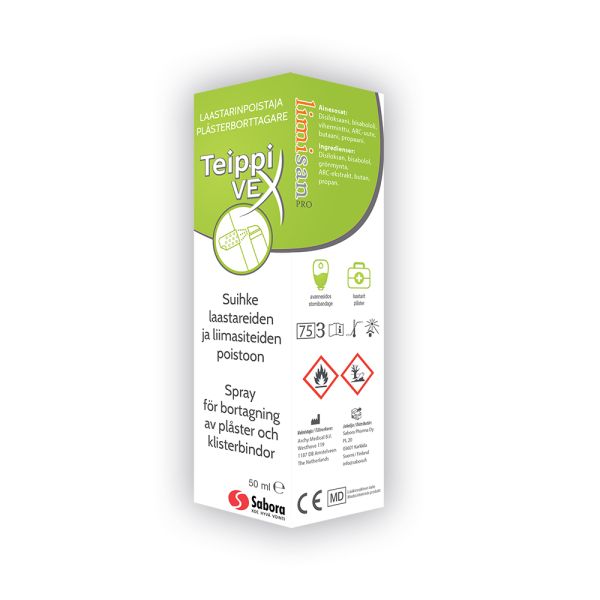 TeippiVEX® on suunniteltu irrottamaan kaikentyyppisiä siteitä, kuten laastareita, teippejä, liimasiteitä ja avannesidoksia helposti ja kivuttomasti. Se irrottaa siteen vaurioittamatta haava-aluetta ja edistää näin sen paranemista. TeippiVEX® on suihke, minkä ansiosta sen käyttö on helppoa ja se vaikuttaa muutamassa sekunnissa.