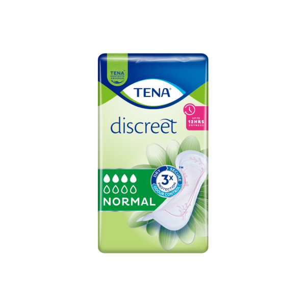 TENA Discreet Normal on huomaamaton ja varma suoja keskivaikeaan virtsankarkailuun. Tämä pehmeä ja äärimmäisen imukykyinen suoja on anatomisesti muotoiltu ja sopii päivittäiseen käyttöön naisille, joilla on herkkä virtsarakko. Kolmitehoinen suoja takaa, että vuodot, hajut ja kosteus imeytyvät nopeasti ja että olo pysyy kuivana pitkään – jopa 12 tunnin ajan. TENA Discreet Normal sopii mainiosti virtsankarkailuun: olo on aina varma ja suoja huomaamaton.