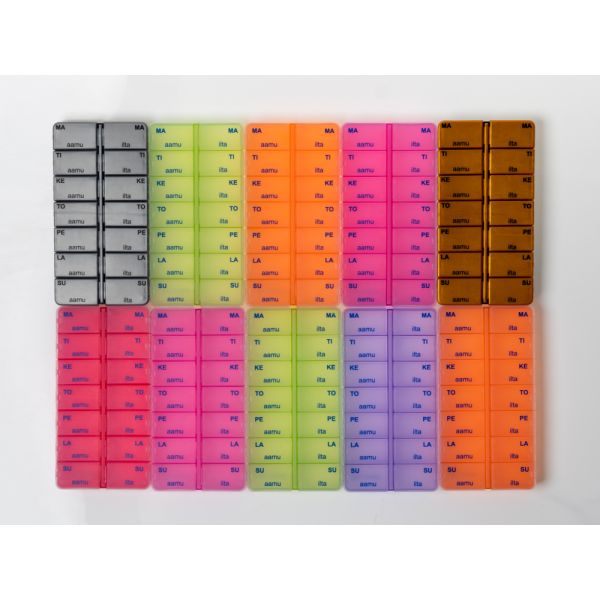 Helpottaa ja selkiyttää lääkkeiden, vitamiinien ja ravintolisien päivittäistä annostelua.