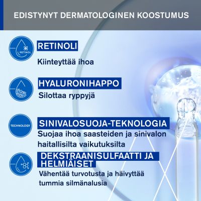 Retinoli & Hyaluronihappo: Uudistavat ja kosteuttavat ihoa.