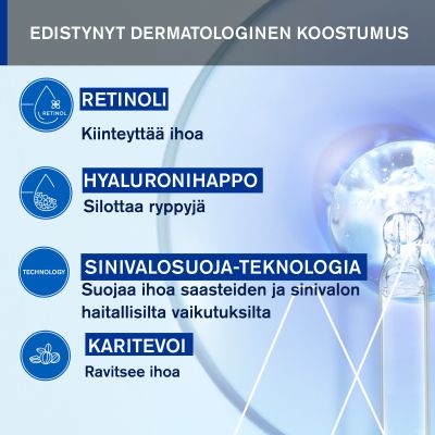 Retinoli: Kiinteyttää ihoa ja parantaa sen rakennetta.