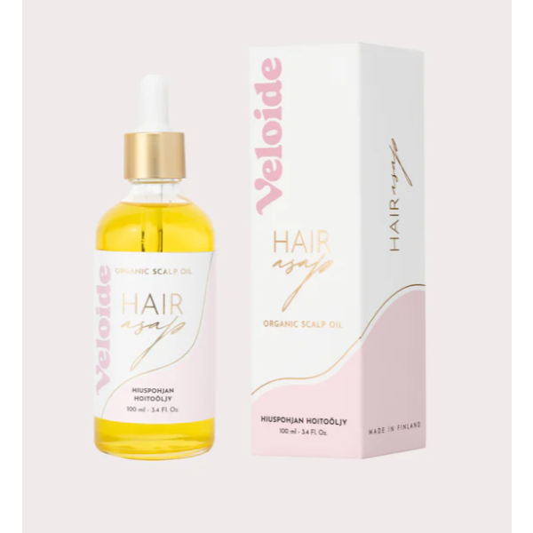 Hair ASAP on 100 % luonnollinen hiuspohjaöljy, joka kosteuttaa hiuspohjaa, vahvistaa hiuksia ja antaa niille upeaa kiiltoa. Sen tarkoin valitut öljyt – jojoba, rosmariini, laventeli ja sitruunaruoho – ravitsevat hiusjuuria, edesauttavat hiusten kasvua ja ehkäisevät hilseilyä.