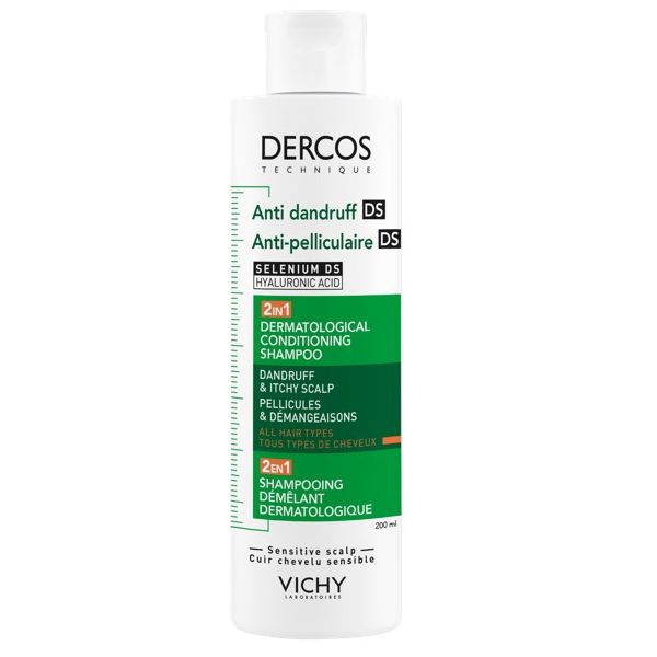 DERCOS Technique 2-in-1 –hilseshampoo+hoitoaine auttaa säilyttämään hiusten kosteuden, vähentää epämukavaa tunnetta hiuspohjassa ja näkyvää hilsettä jo ensimmäisellä käyttökerralla sekä estää hilseen uusiutumista.