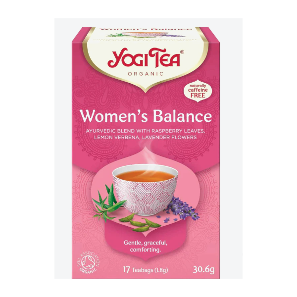 Yogi Tea Women's Balance tee on suloisen mieto teesekoitus naiselle. Sisältää mm. vadelmanlehteä, sitruunamelissaa ja laventelia. Luontaisesti kofeiiniton.